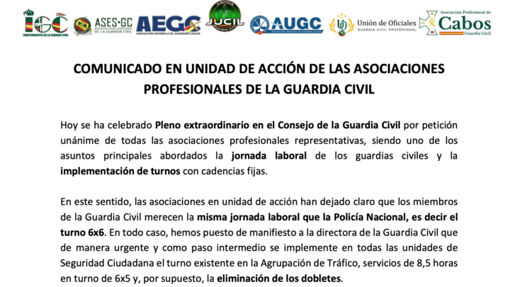 COMUNICADO EN UNIDAD DE ACCIÓN DE LAS ASOCIACIONES PROFESIONALES DE LA GUARDIA CIVIL