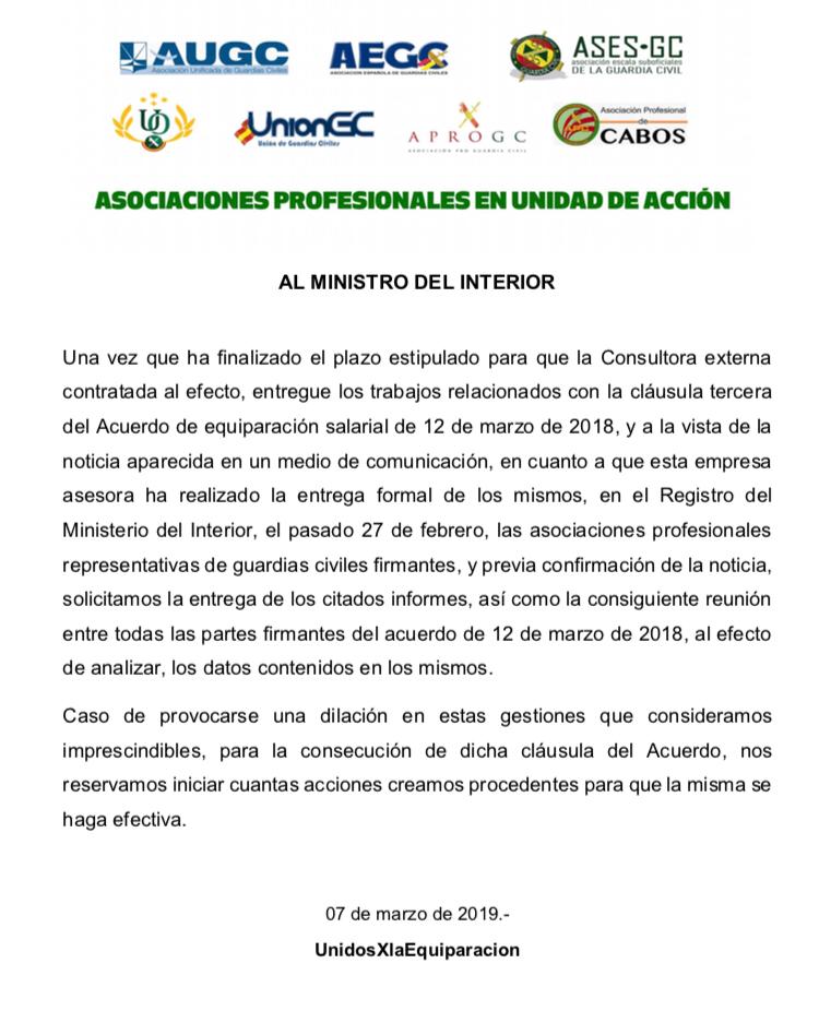 Las asociaciones de guardias civiles expondrán a los medios las supuestas irregularidades detectadas en el proceso de equiparación salarial