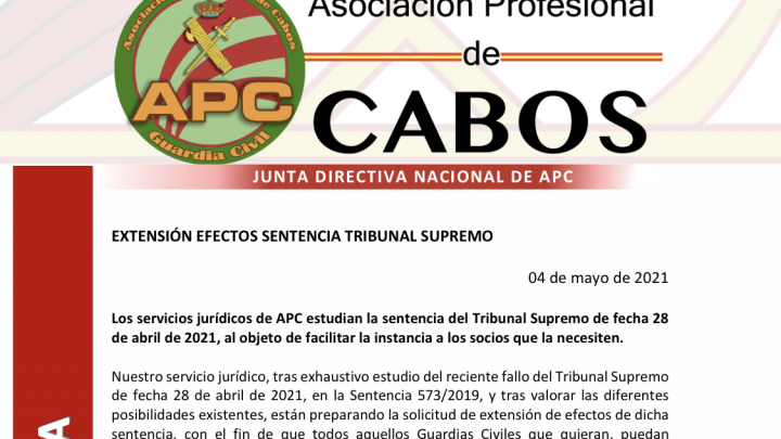 Los servicios jurídicos de APC estudian la sentencia del Tribunal Supremo de fecha 28 de abril de 2021, al objeto de facilitar la instancia a los socios que la necesiten.