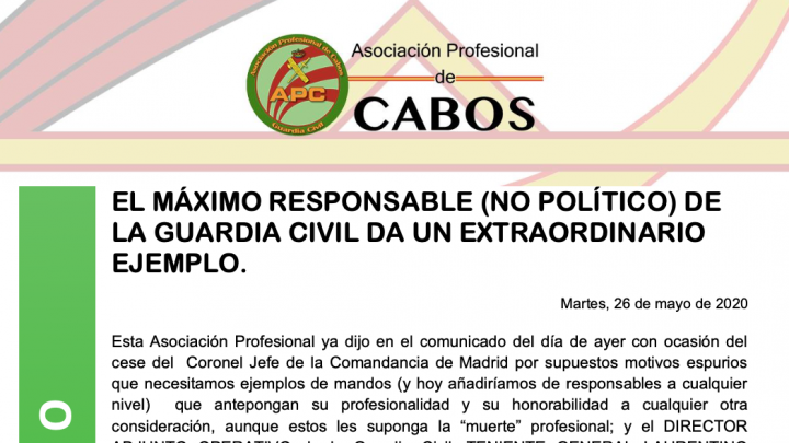 EL MÁXIMO RESPONSABLE (NO POLÍTICO) DE LA GUARDIA CIVIL DA UN EXTRAORDINARIO EJEMPLO.