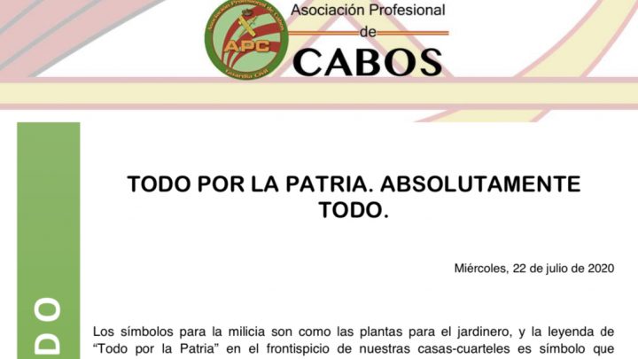 Los símbolos para la milicia son como las plantas para el jardinero, y la leyenda de “Todo por la Patria” en el frontispicio de nuestras casas-cuarteles es símbolo que proyecta un juramento y una advertencia. Un juramento porque todos los guardias civiles juramos derramar en defensa de nuestra Patria y del orden constitucional hasta la…