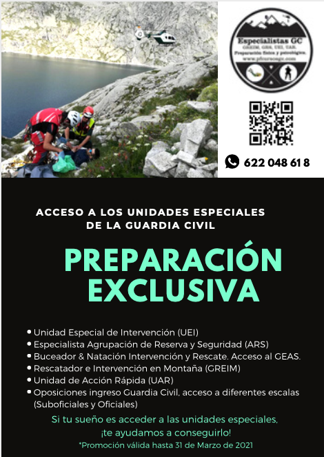 Pero recuerda, si lo que quieres, es una especialidad que requiere una preparación física, en www.pfcursosgc.com (servicio exclusivo para el cuerpo de la Guardia Civil), te pone en forma para especialidades como UEI, ARS, URS, GEAS, UAE, GREIM.