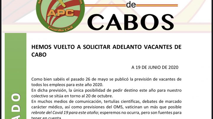 HEMOS VUELTO A SOLICITAR ADELANTO VACANTES DE CABO