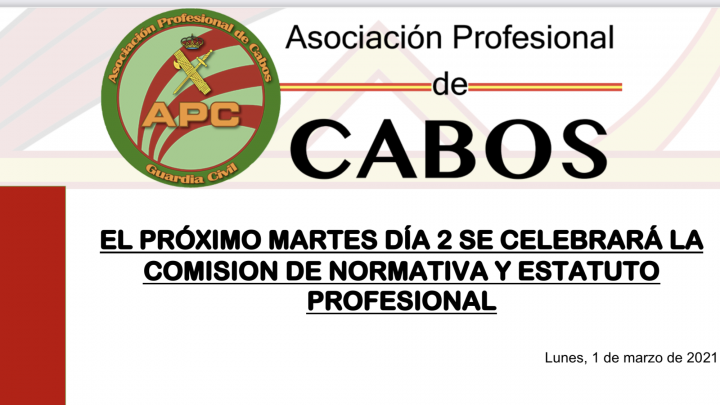 Mañana se reunirá la Comisión de normativa y estatuto profesional del Consejo de la Guardia Civil (correspondiente al primer trimestre de 2021) en el que se informarán los siguientes proyectos normativos.