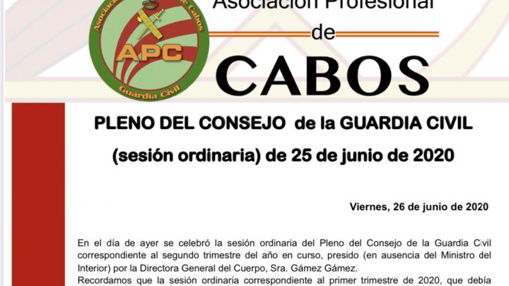 PLENO DEL CONSEJO de la GUARDIA CIVIL (sesión ordinaria) de 25 de junio de 2020