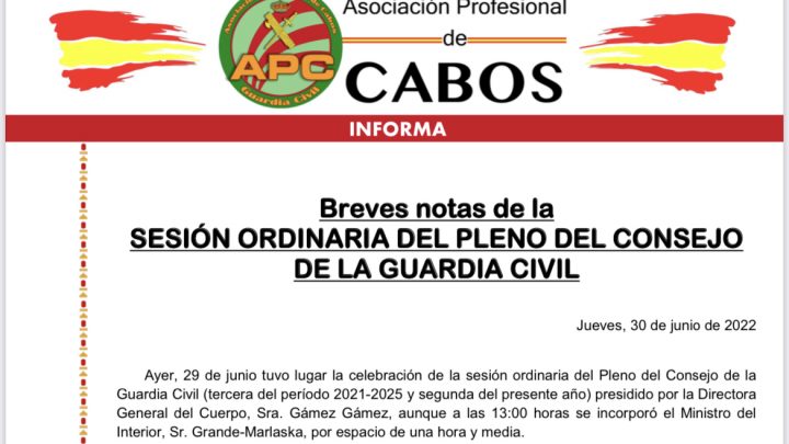 Breves notas de la SESIÓN ORDINARIA DEL PLENO DEL CONSEJO DE LA GUARDIA CIVIL